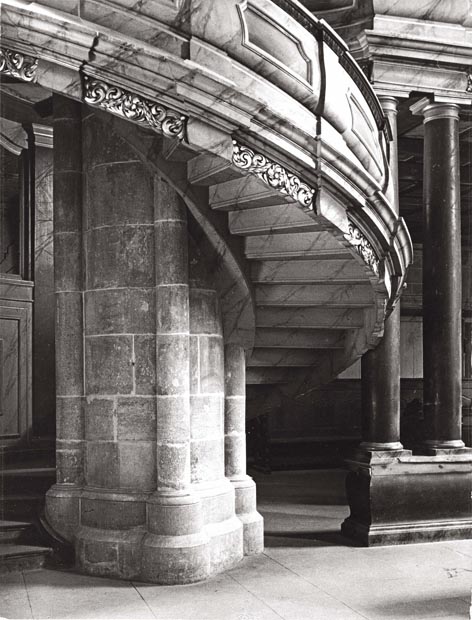 Gotischer Pfeiler mit angeschmiegter Barocktreppe im Dom als Zeuge der vielen Jahrhunderte, die an ihm bauten