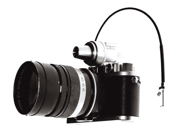 Leica IIIa mit dem am 17.03.1948 an Hans Saebens ausgelieferten Summarex f=8.5cm 1:1.5, Seriennummer 593216