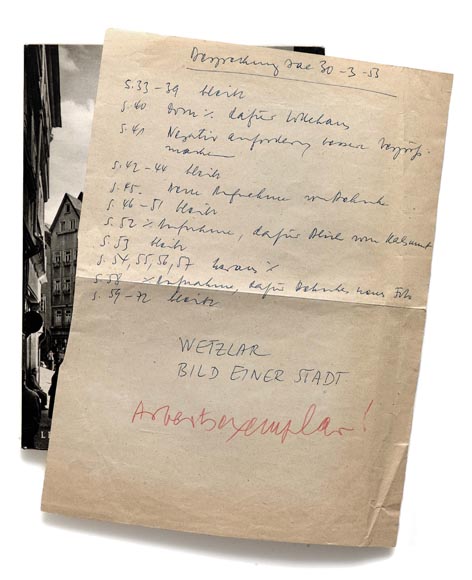 Arbeitsexemplar der Erstauflage des Buchs „Wetzlar Bild einer Stadt“ von Heinrich Stöckler